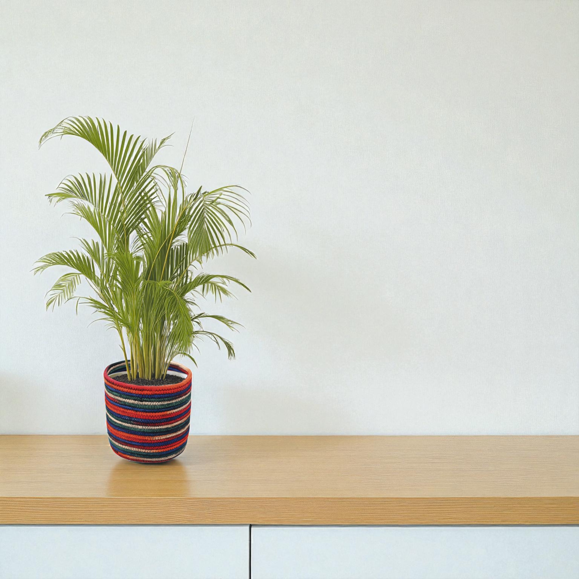 5-Piece Jute Planter Basket Set – Rainbow Multicolor Stripe